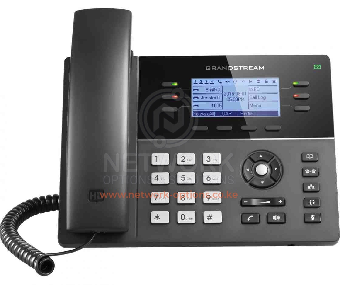 GXP1760W is a mid-range, WiFi-enabled IP phone that features a sleek design and moderate call-volume features. It comes equipped with 6 lines, 3 SIP accounts, 6 dual-color line keys and 4 XML programmable soft keys along with a 200 x 80 pixel (3.3”) back-lit LCD screen. For added personalization the GXP1760W features personalized ring tone/ring back tone music and integration with advanced web and enterprise applications as well as local weather services. The GXP1760W offers dual auto-sensing 10/100Mbps network ports and supports automated provisioning features with media access control. This mid-range IP phone delivers outstanding performance and design to users worldwide at a budget-friendly price point.